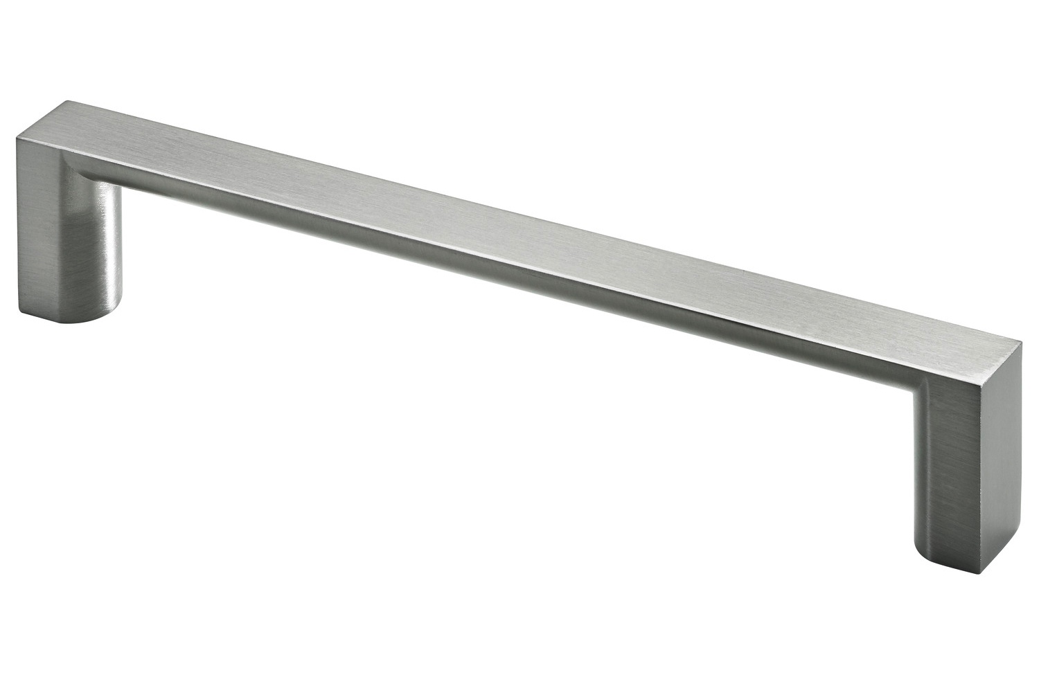 Poignée de meuble, ◘──◘ 128 mm, 137,5 x 12 x 26,5 mm, Zamak, Aspect inox