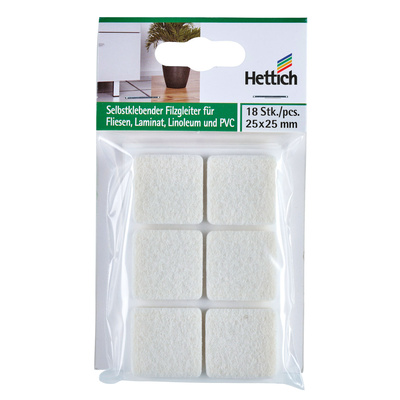 Artikeltyp Filzgleiter, selbstklebend, eckig, 25 x 25 x 4,5 mm, synthetischer Filz, weiß