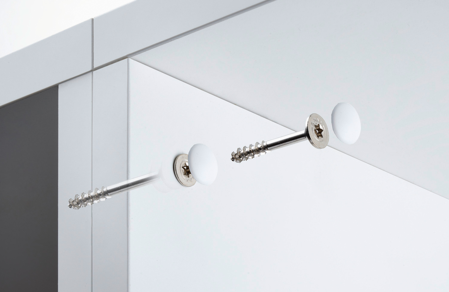 Spax carcase connecting screw with cover caps, Ø 4 x 30 mm, steel, nickel plated