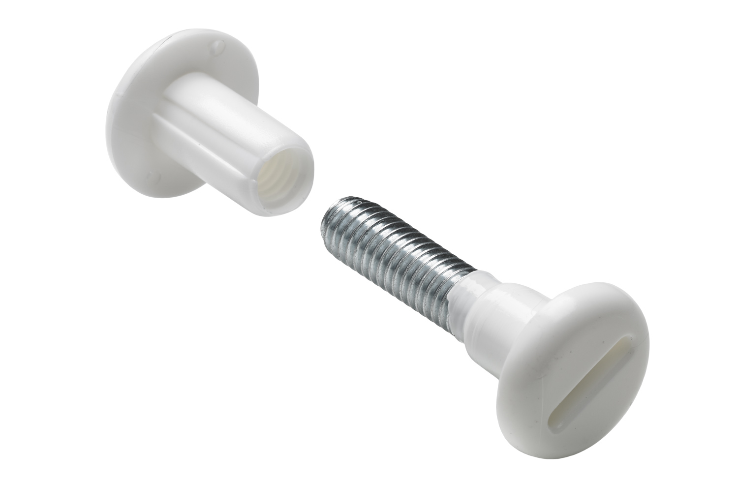 Verbindungsschraube mit Hülse, M6 34-45 mm, Stahl, Kunststoff, weiß