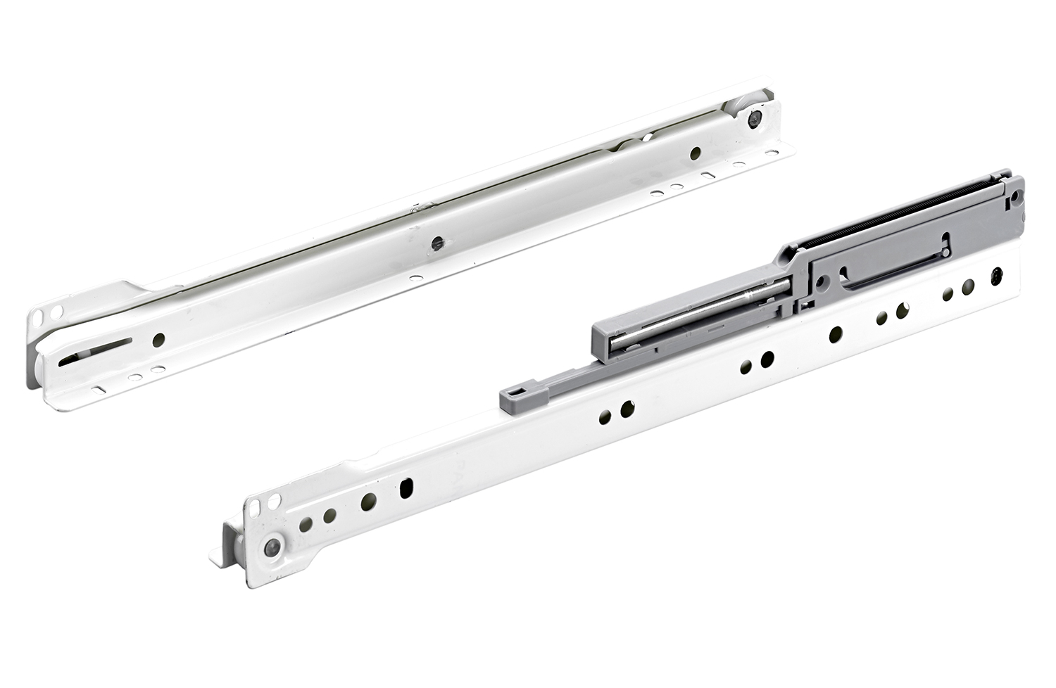 Roller runner system part-extension slide with integrated soft-close function, Nominal length 550 mm, 20 kg, steel, powder coated, white