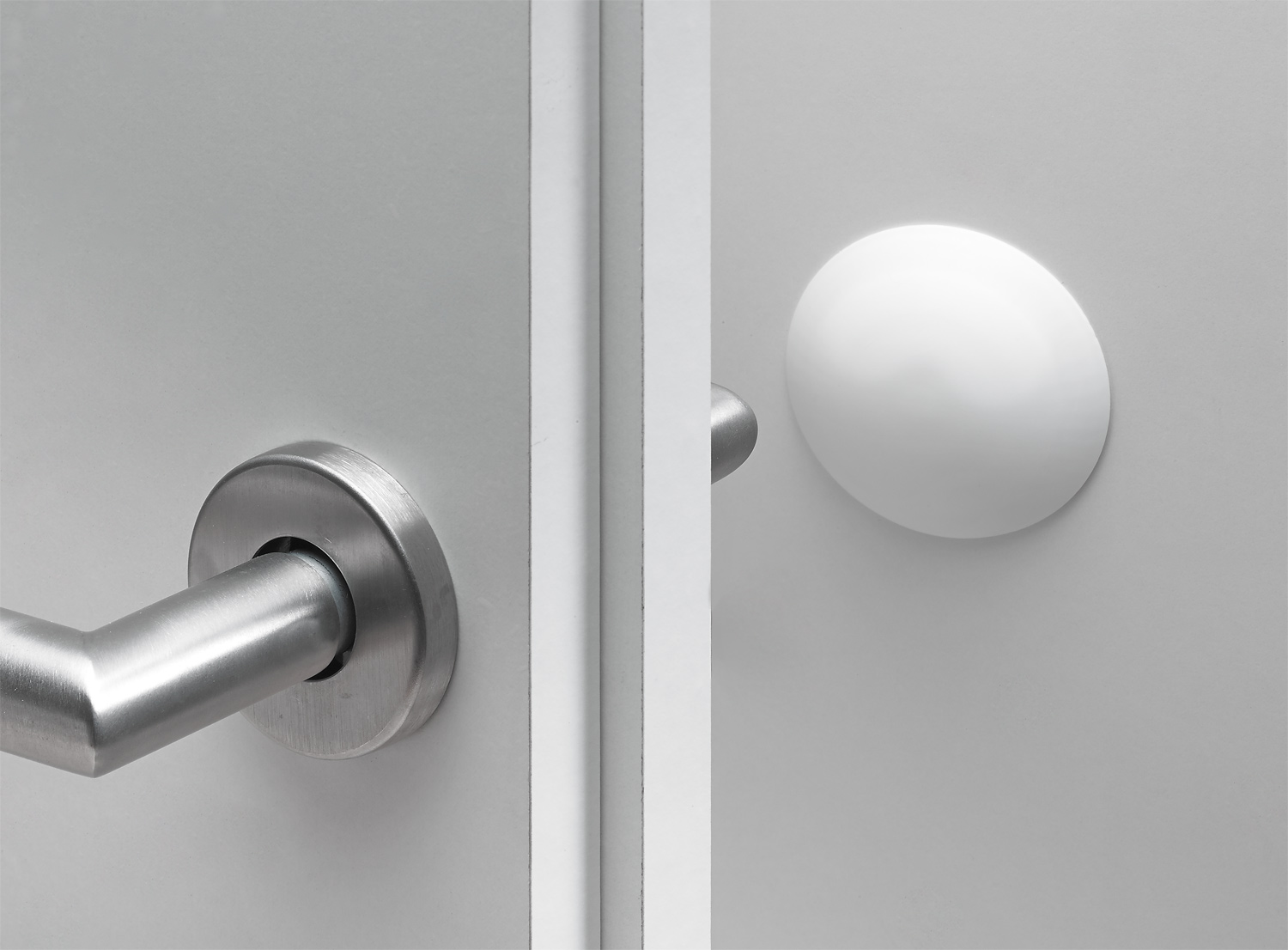 Wall bufferss for screwing on or sticking on, Ø 40x11 mm & Ø 60x15 mm, plastic, white