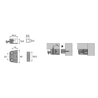 | Type de l'article | Ferrure d‘assemblage à visser Trapez, 15,8 x 40 x 20,5 mm, Zamak, nickelée |